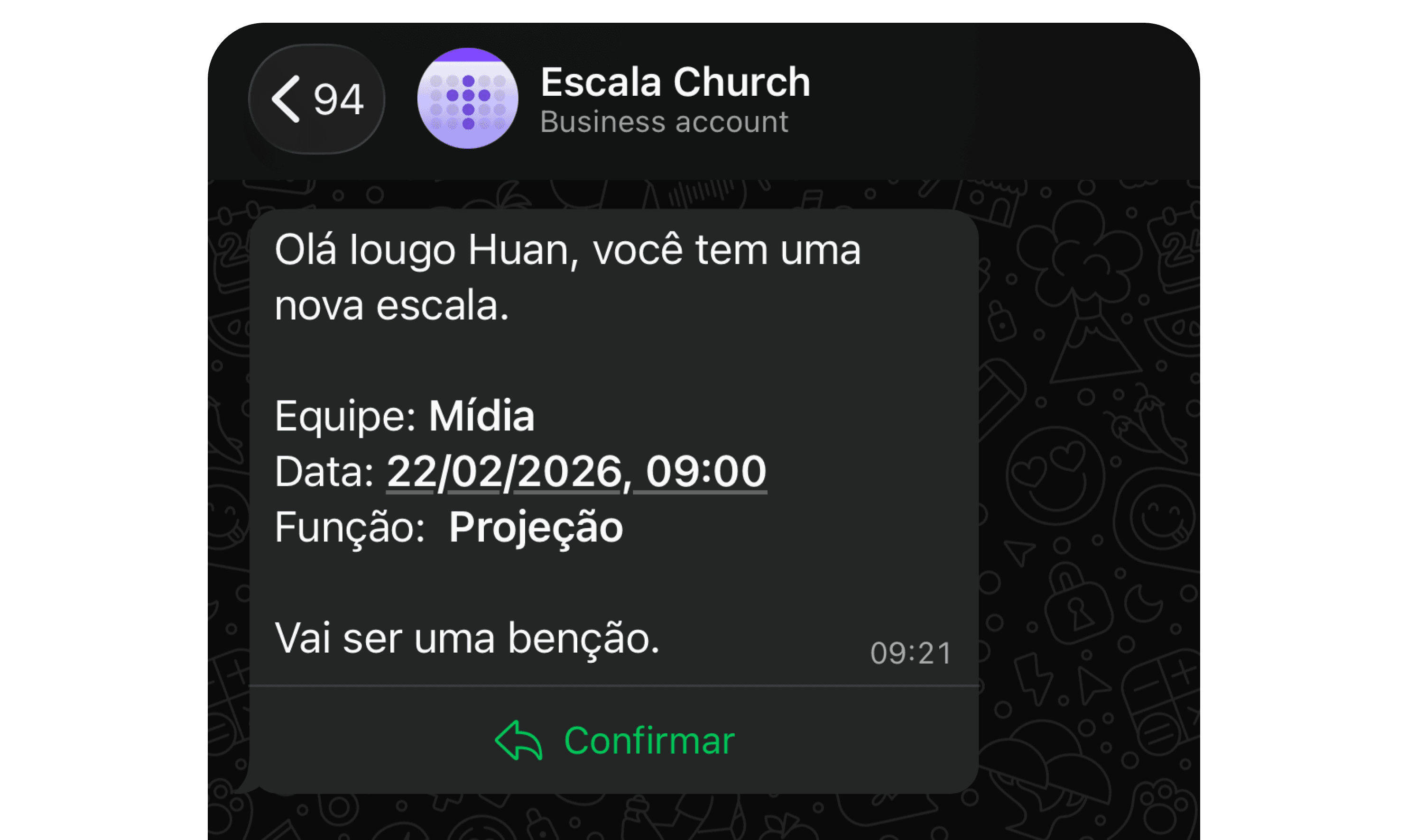 Notificações automáticas e confirmação de presença pelo WhatsApp