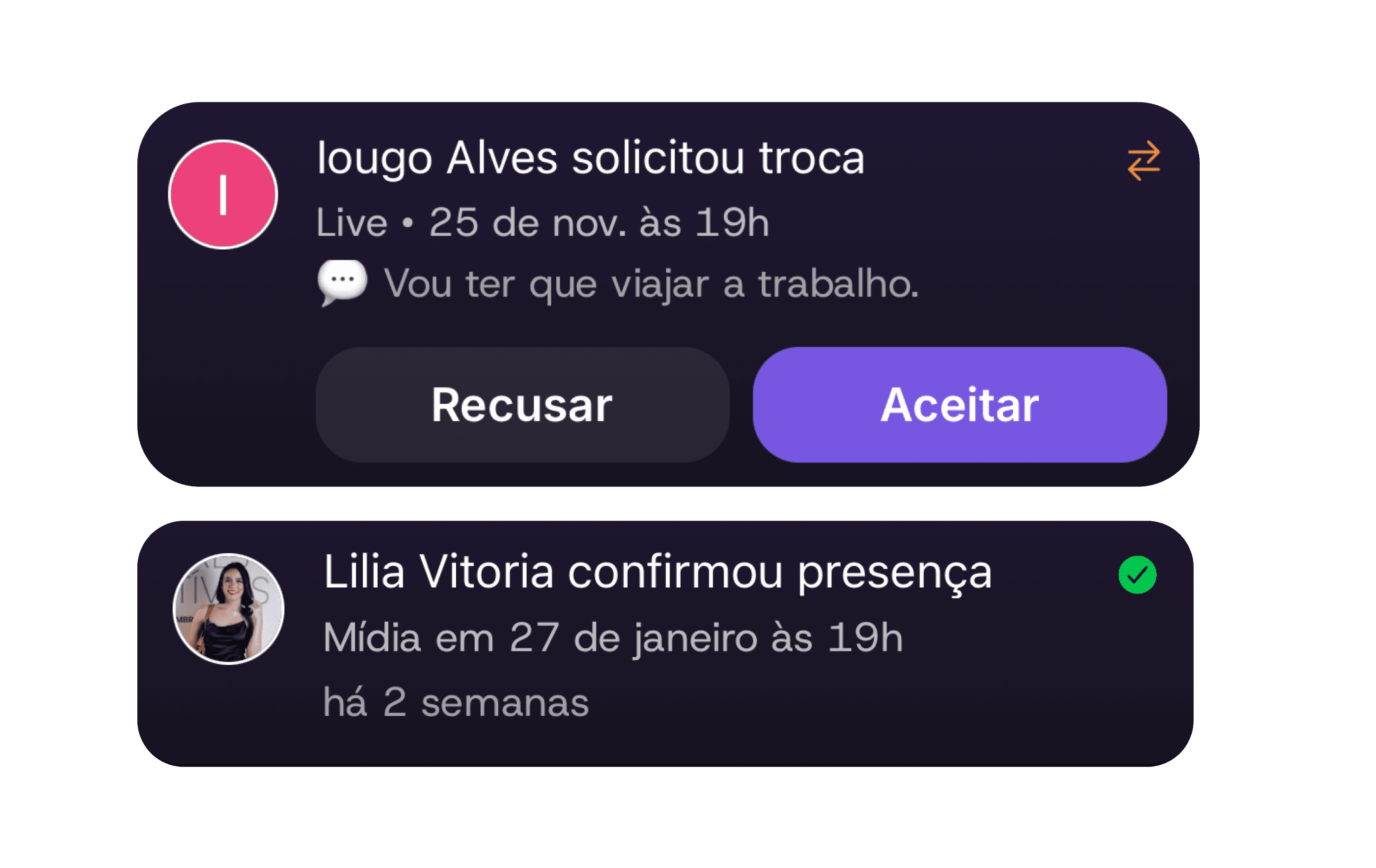 Receba pedidos de troca e aprove ou recuse direto pelas notificações.
